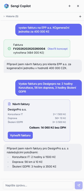 Fakturace hodná digitální firmy, bez zbytečné administrativy. Správa vydaných faktur, jejich úhrad, párování plateb, správa klientů, produktů, vysoká míra automatizace a Sengi AI s chatem Sengi Copilot…